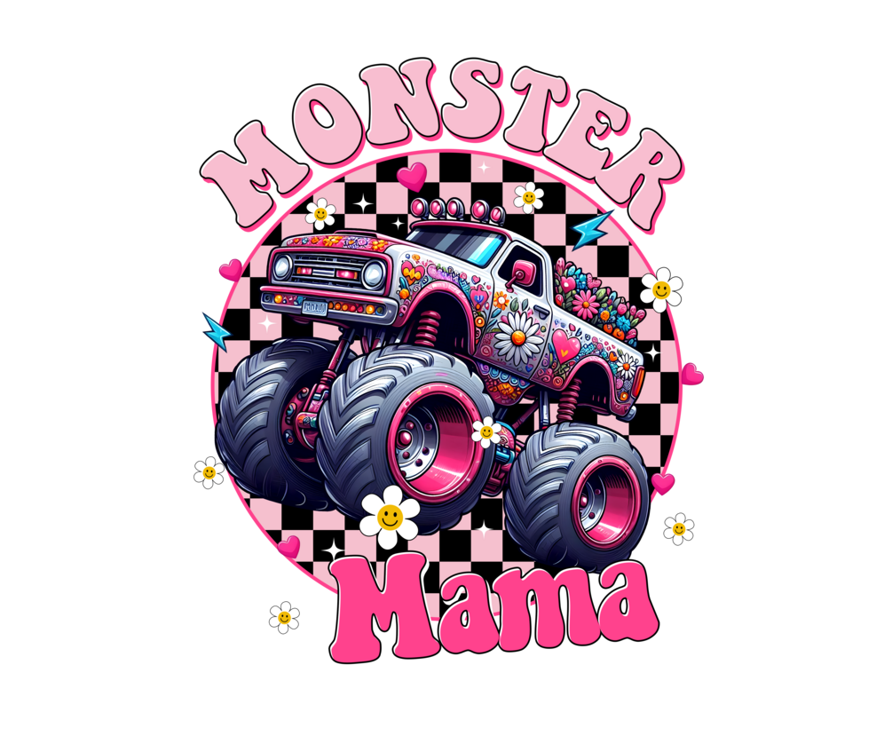 Pink Monster Truck Mama Png, Monster Truck Are My Jam Truck Png, Checkered Coquette Mama Png, Mama Bow Png, Mother's Day Png